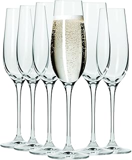 Lot de 6 flûtes à champagne en cristal en forme de tulipe pour mariage et toast, idéales pour champagne, mimosa, cidre pétillant, vin – Flûtes soufflées à la main – Fabriquées en Europe – 170 ml