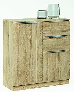 Demeyere Filea” Enfilade de Salle à Manger scandinave/Vintage 1 Porte 3 tiroirs-125x81x42 cm, Chêne kronberg/Blanc/Gris, 125x81x42 cm