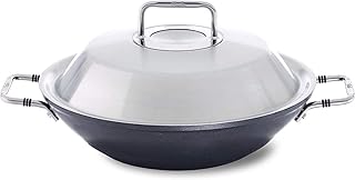 Fissler Adamant/Wok en aluminium, Ø 31 cm, avec couvercle en métal, revêtement antiadhésif, bord haut, résistant aux rayures, tous feux dont induction