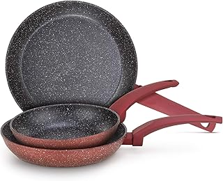 ROSMARINO Lot de 3 poêles à Frire (20, 24, 28 cm) - Poêle à Induction avec revêtement antiadhésif Lisse et poignées de Maintien au Froid - Friture sans Graisse ni Huile