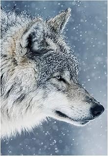 Fipart DIY Peinture Diamant Point de Croix kit d'artisanat ,Salon Stickers muraux décor à la Maison。(16X12Pouces/40X30CM) Loup des neiges