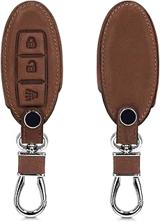 kwmobile Accessoire Clé de Voiture Compatible avec Nissan 3-Bouton - Coque de Protection en Simili Cuir - Brun foncé