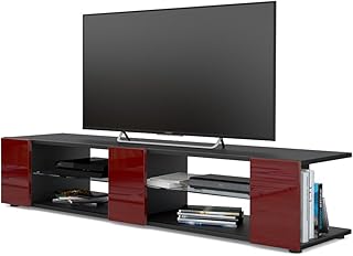 Vladon Meuble TV Armoire Basse Movie V2, Corps en Noir Mat/Façades en Bordeaux Haute Brillance
