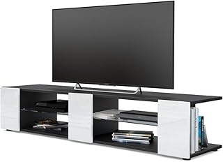 Vladon Meuble TV Armoire Basse Movie V2, Corps en Noir Mat/Façades en Blanc Haute Brillance
