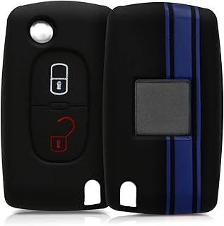 kwmobile Accessoire Clé de Voiture Compatible avec Peugeot Citroen Clef de Voiture 2-Bouton - Coque de Protection Souple en Silicone - Bande de Couleur Bleu-Noir