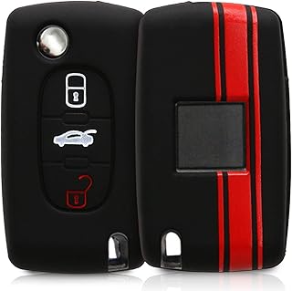 kwmobile Accessoire Clé de Voiture Compatible avec Peugeot Citroen 3-Bouton - Coque de Protection Souple en Silicone - Bande de Couleur Rouge-Noir