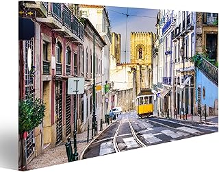 islandburner, Tableau Tableaux sur Toile Lisbonne, Paysage Urbain de Porgugal et Tramway près de la cathédrale de Lisbonne. Impression Image Motif Moderne Décoration Affiche Photo QOG