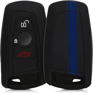 kwmobile Accessoire Clé de Voiture Compatible avec BMW (Keyless Go Uniquement) 3-Bouton - Coque de Protection Souple en Silicone - Bande de Couleur Bleu-Noir