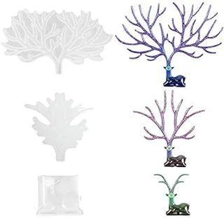 Aiboria Lot de 3 moules en résine pour présentoir à bijoux en forme de bois de cerf et en silicone pour boucles d'oreilles pendantes en résine, bijoux en résine époxy, bricolage
