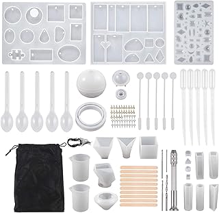 Kit de moules en silicone époxy 151 pièces en résine moulée DIY Résine Casting Moules pour la fabrication de bijoux Pendentif Collier Boucles d'oreilles Décoration Support Bijoux DIY