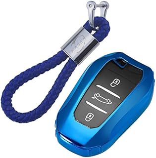 ontto Coque de clé de voiture compatible avec Peugeot 308 408 508 2008 3008 4008 5008 Citroën C4 C4L C6 C3-XR télécommande coque en TPU pour clé de voiture Bleu